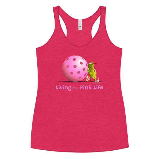 Women's Racerback Pickleball Tank Top - Resting Pickleball - "Living the Pink Life" #pink