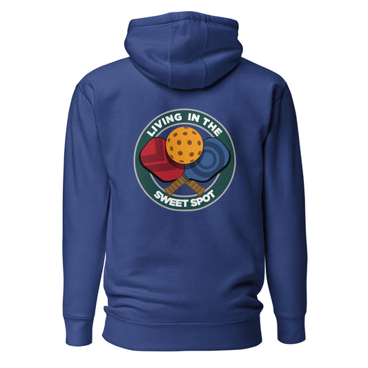 Warm Pickleball Hoodie - "Living in the Sweet Spot" - Crossed Paddles (pocket)