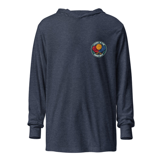 Hooded Long-Sleeve T-shirt - "Living in the Sweet Spot" - Crossed Paddles (pocket)