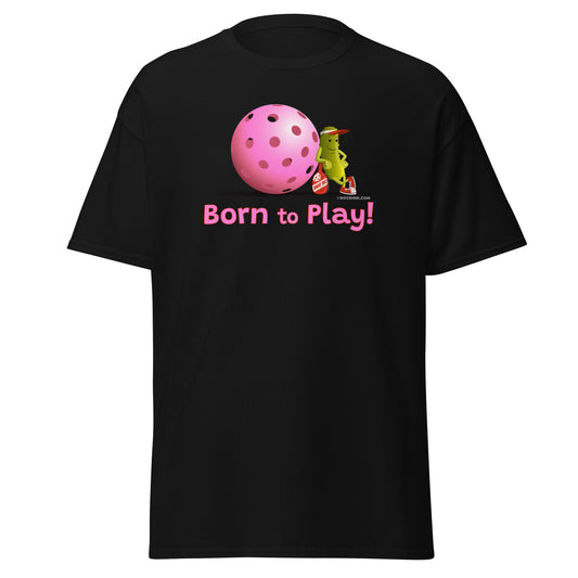 100% Cotton Pickleball T-Shirt - Resting Pickleball - "Born to Play" #pink