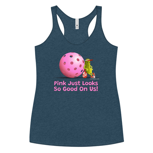 Women's Racerback Pickleball Tank Top - Resting Pickleball - "Pink Looks So Good..." #pink