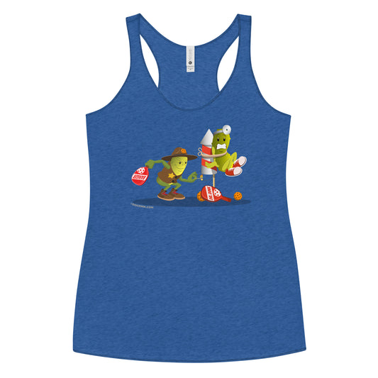 Women's Racerback Pickleball Tank Top - Dr. Dink vs Sgt. Banger - Light it up!